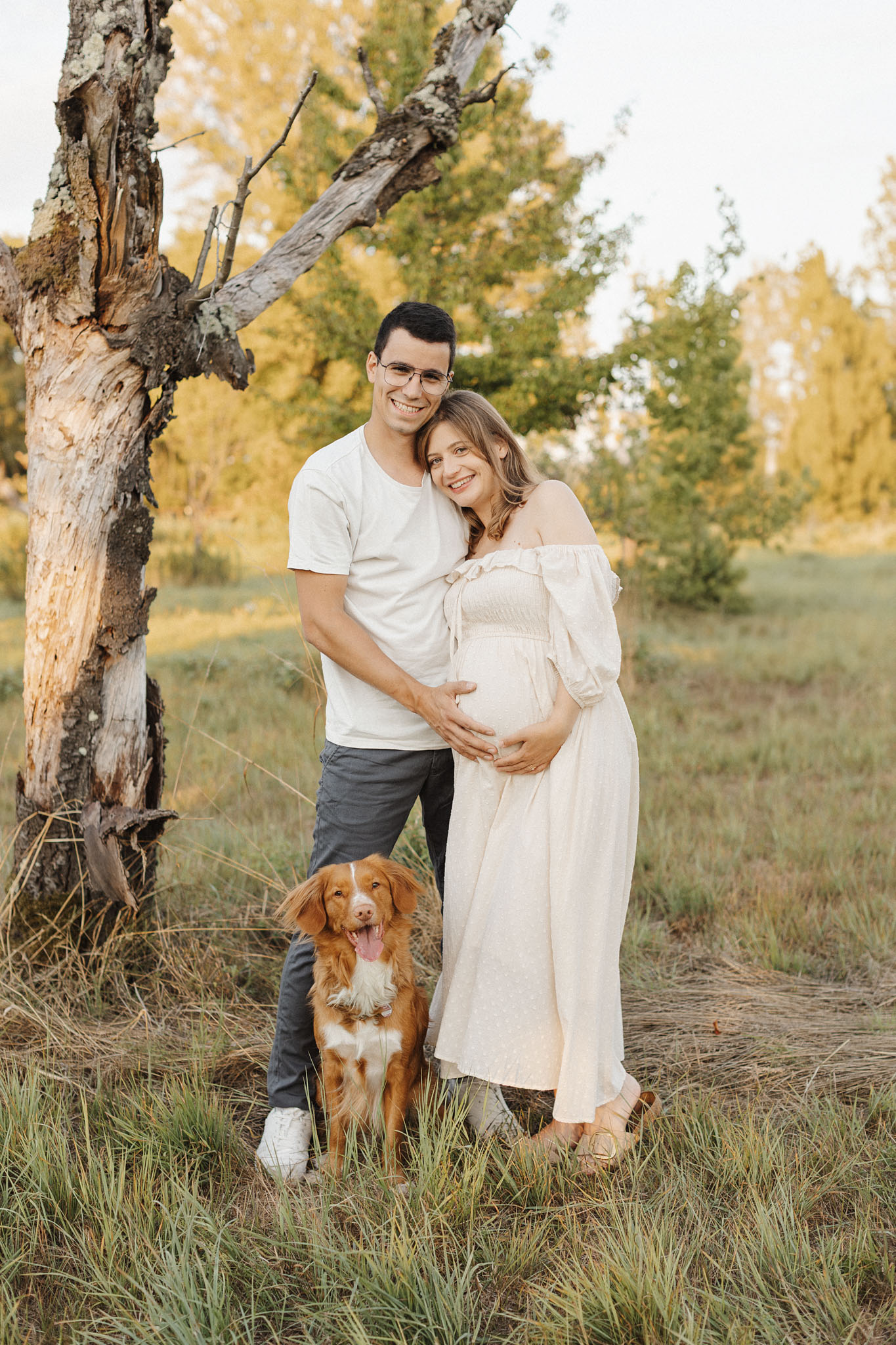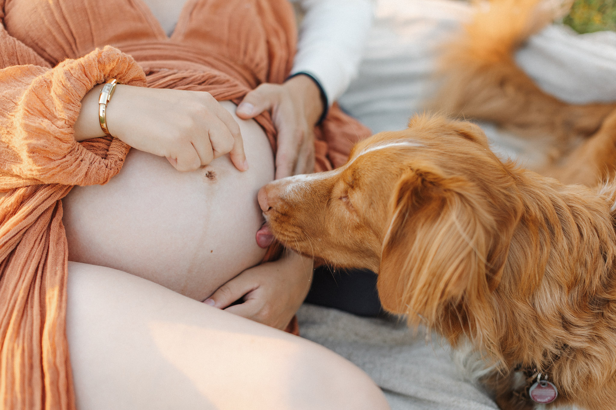Der werdende Papa und der Hund waren natürlich mit dabei – denn ein Babybauchshooting darf genauso individuell sein wie die Familie selbst. Und was könnte schöner sein, als den zukünftigen Familienhund mit in diese besondere Zeit einzubeziehen?