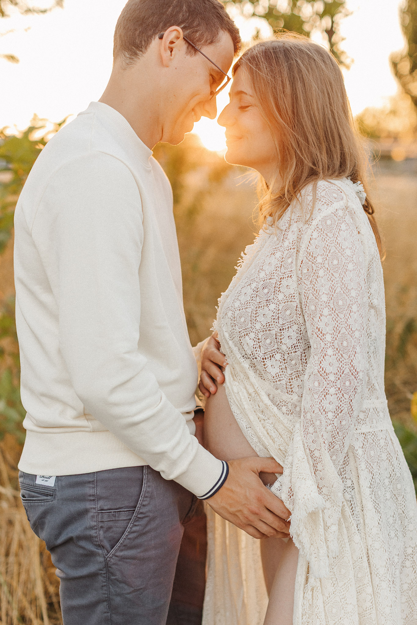 Die Natur rund um Stutensee-Spöck bietet ideale Kulissen für natürliche Schwangerschaftsfotos. Wenn dann noch der Himmel in warmen Orange- und Rosétönen leuchtet, entstehen Bilder, die mehr sind als Erinnerungen – sie erzählen eine Geschichte. Eine Geschichte vom Warten, vom Wachsen, von Liebe.