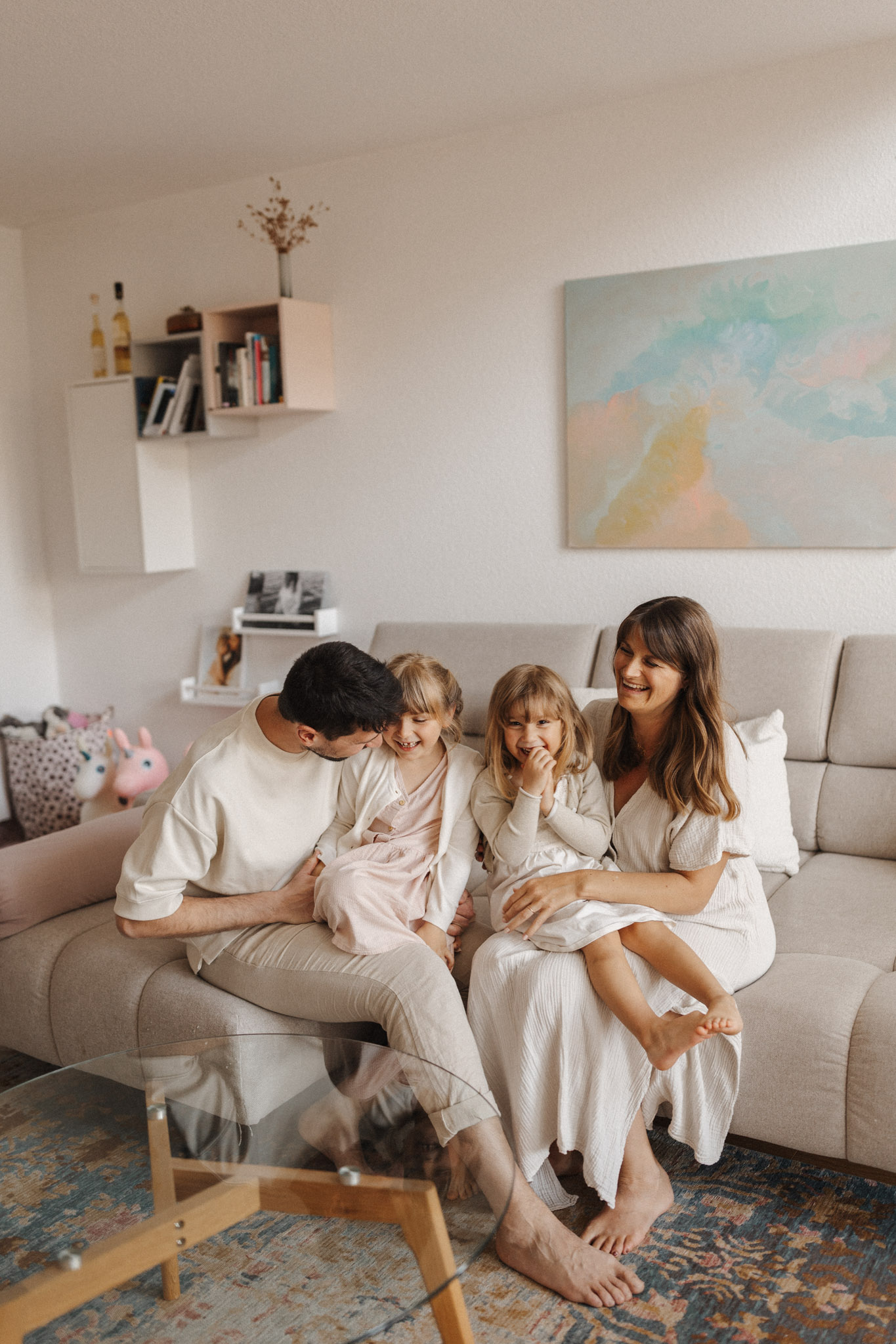 Für diese Familien-Homestory durfte ich die vier in ihrem liebevollen Zuhause besuchen. Genau dort, wo sie lachen, spielen, kuscheln und leben. Keine gestellten Posen, keine Kulisse – sondern echte Momente voller Leben. Das Zuhause ist der Ort, an dem sich Kinder geborgen fühlen, an dem sie sich frei bewegen dürfen – und an den sie sich später mit einem warmen Herzen erinnern werden.
