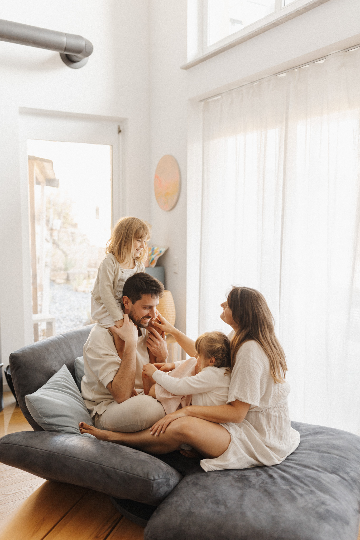Das Schöne an einer Homestory ist, dass sich jedes Familienmitglied einbringen kann. Gerade wenn größere Kinder mit dabei sind, können sie sich, falls nötig, zurückziehen und dabei trotzdem Teil der Erinnerung bleiben. So bleibt der Fokus auf der Familie, aber es entsteht kein Stress, wenn ein Kind mal keine Lust mehr auf Fotos hat. Ihr könnt in aller Ruhe weitermachen, während alle ihren Platz finden – und ich fange die Momente ein, die euch wirklich wichtig sind.