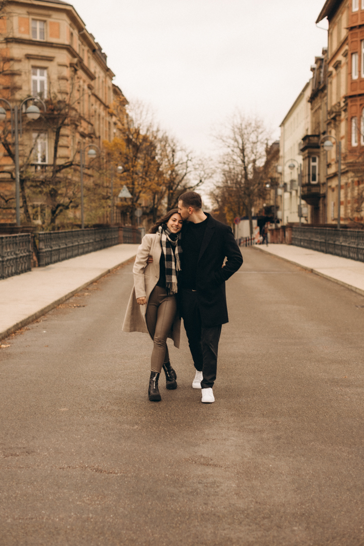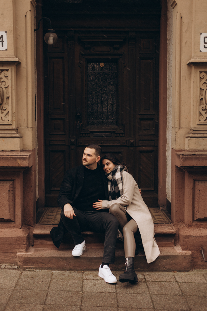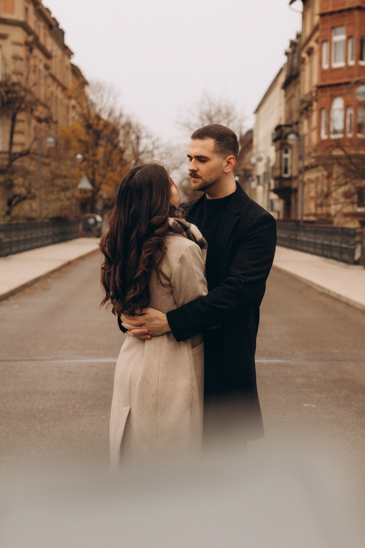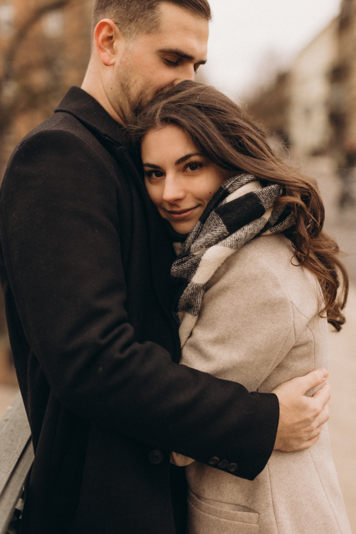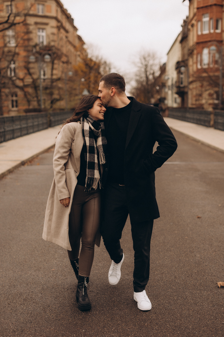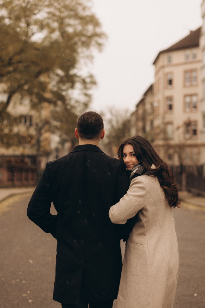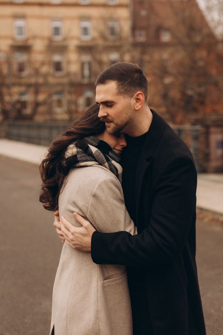 Viele denken, der Winter sei nicht die richtige Zeit für Paarfotos – aber ich finde, gerade diese Jahreszeit hat ihren ganz besonderen Reiz. Die Atmosphäre ist ruhiger, intimer. Die Menschen rücken näher zusammen. In Kombination mit den alten Fassaden, den stillen Straßen und dem leicht gedämpften Licht entstehen Bilder, die tief berühren.