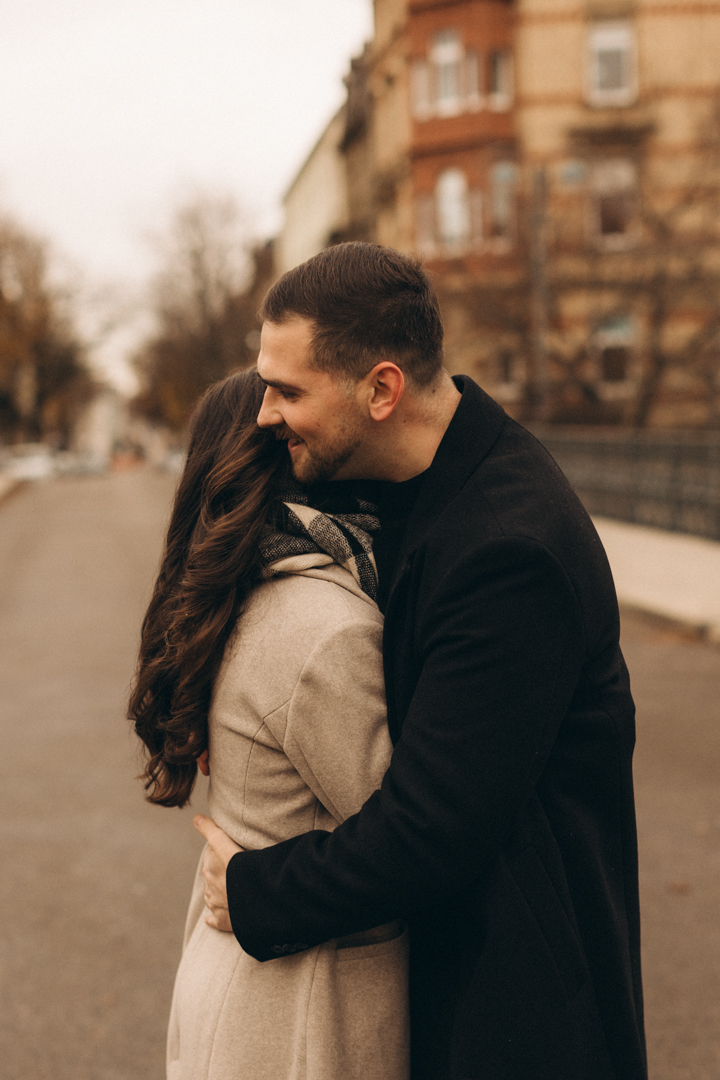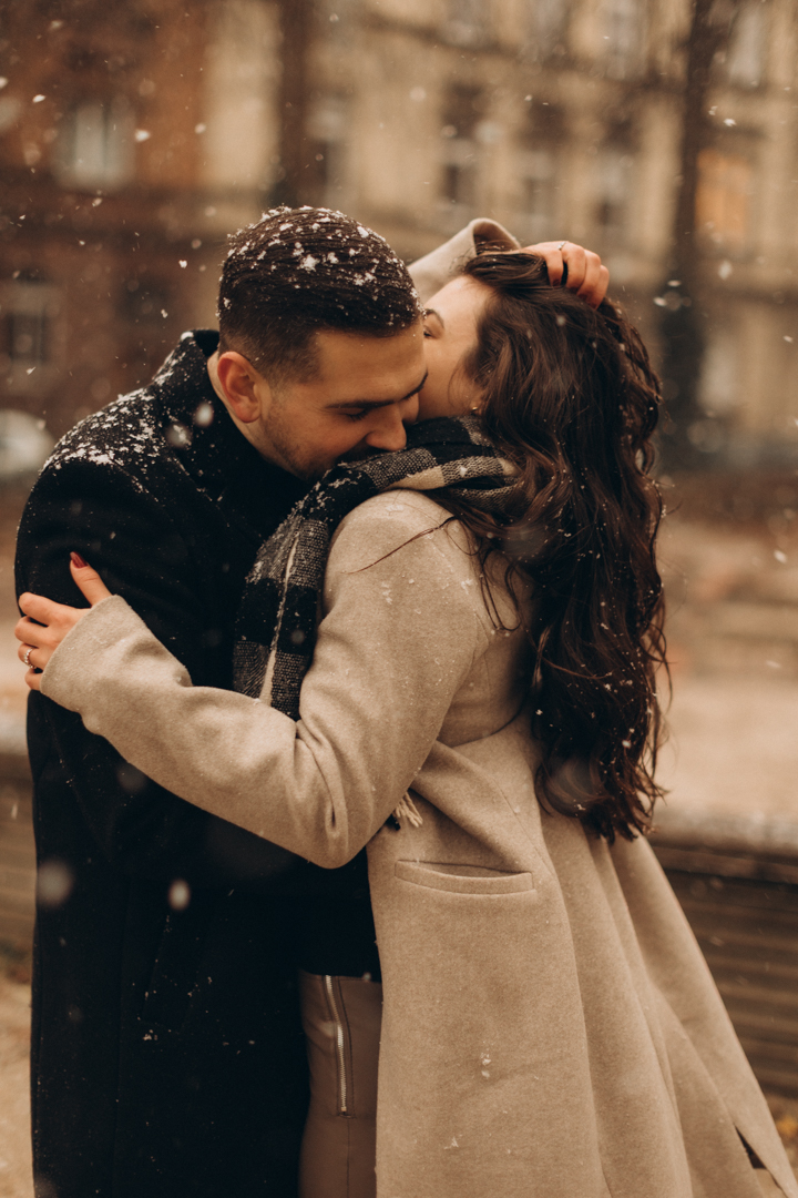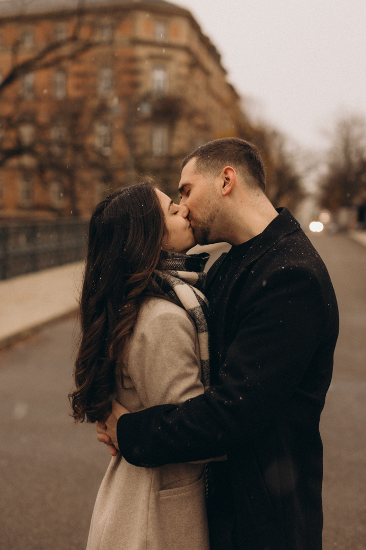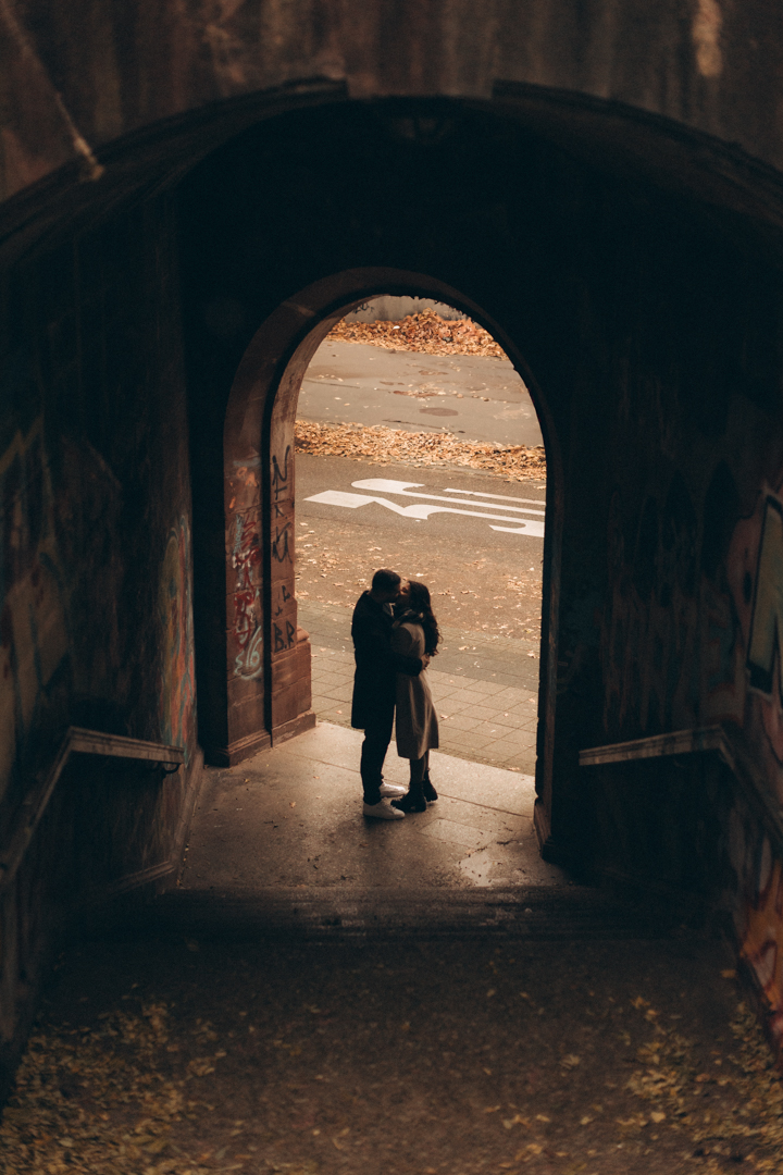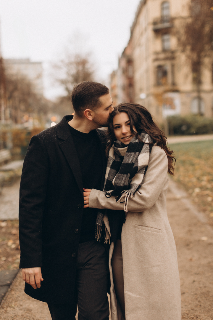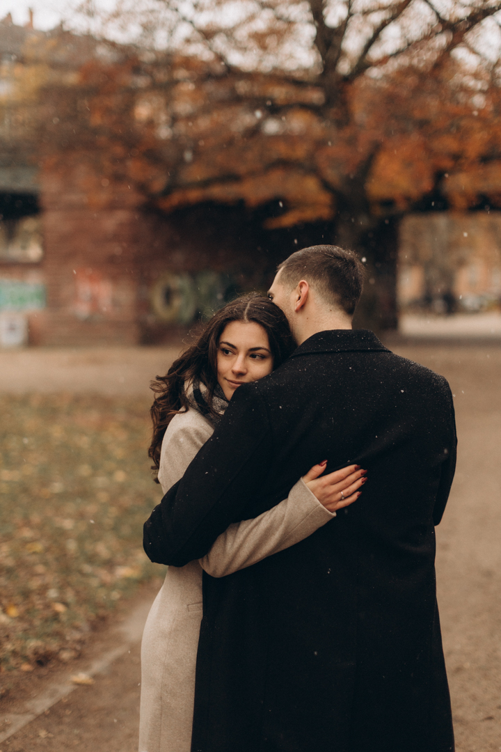 Viele denken, der Winter sei nicht die richtige Zeit für Paarfotos – aber ich finde, gerade diese Jahreszeit hat ihren ganz besonderen Reiz. Die Atmosphäre ist ruhiger, intimer. Die Menschen rücken näher zusammen. In Kombination mit den alten Fassaden, den stillen Straßen und dem leicht gedämpften Licht entstehen Bilder, die tief berühren.
