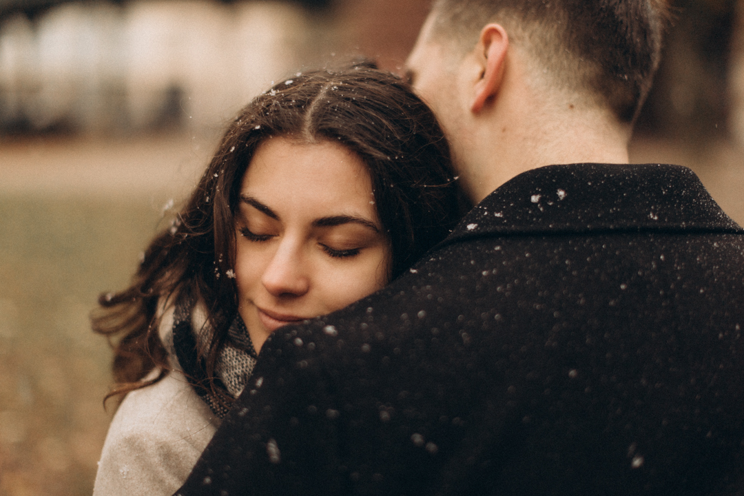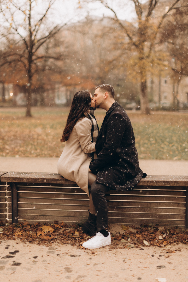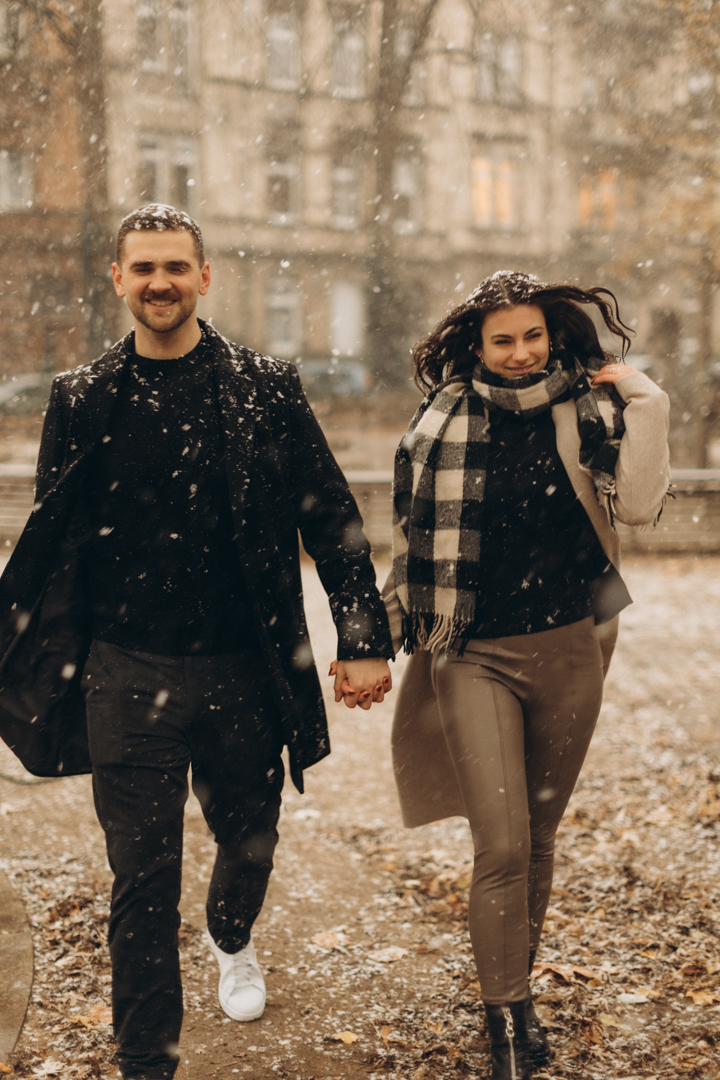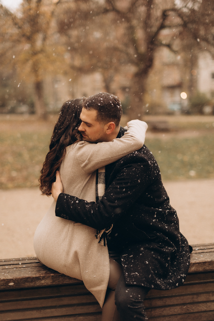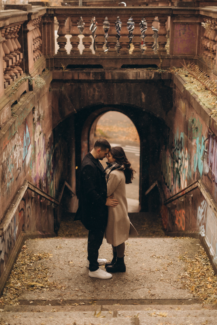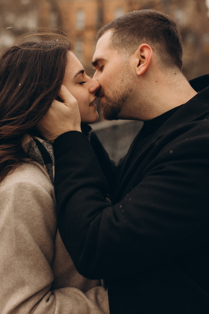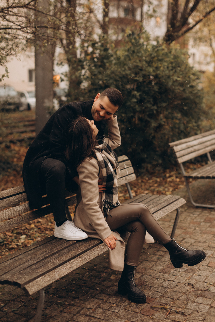 Viele denken, der Winter sei nicht die richtige Zeit für Paarfotos – aber ich finde, gerade diese Jahreszeit hat ihren ganz besonderen Reiz. Die Atmosphäre ist ruhiger, intimer. Die Menschen rücken näher zusammen. In Kombination mit den alten Fassaden, den stillen Straßen und dem leicht gedämpften Licht entstehen Bilder, die tief berühren.