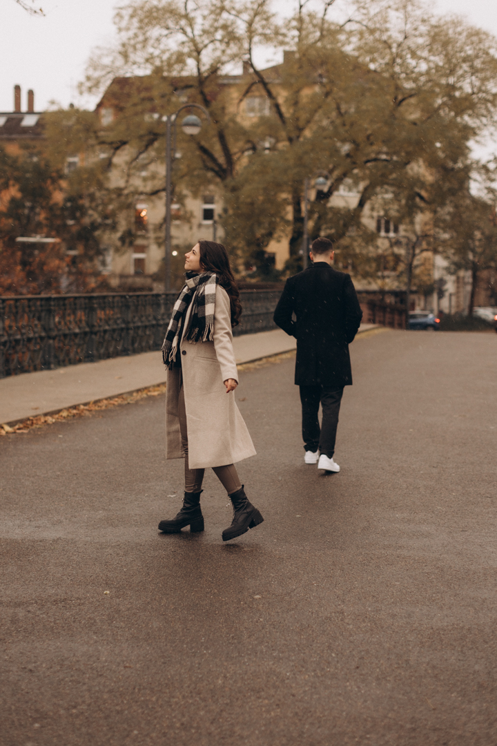 Bei unserem letzten Wintershooting mit einem verliebten Paar durften wir genau das erleben: Nähe, echte Emotionen und eine Stadt, die uns ihre schönste Seite gezeigt hat. Die klare Winterluft, das sanfte Licht – und dann, gegen Ende des Shootings, begannen ganz plötzlich kleine Schneeflocken zu fallen. Ein Moment, wie aus einem Film. Ungeplant. Echt. Magisch.